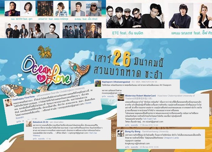 ดูรายละเอียดงานคอนเสิร์ตเพิ่มเติมที่ Facebook : Ocean in love