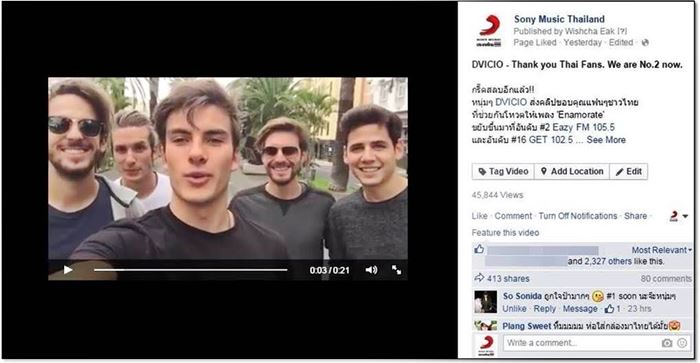 ทั้ง 5 หนุ่มก็เลยส่งคลิปมามาอ้อนแฟนเพลงชาวไทย ให้ช่วยกันขอเพลง ‘Enamorate’ ให้ขึ้นอันดับ #1 (ชมคลิป: http://on.fb.me/1OkV9VA) จนเป็นเหตุให้สาวๆชาวไทยปลื้มปริ่มไปตามๆกัน แถมยังพร้อมใจกันแชร์คลิปดังกล่าวไปแล้วกว่า 400 ครั้ง และมีแฟน ๆ ชาวไทยคลิกชมนี้ไปแล้วกว่า 45,000 ครั้งในวันเดียว งานนี้ต้องมาลุ้นกันว่าเพลง ‘Enamorate’ จะขึ้นถึงอันดับ #1 ได้หรือเปล่า